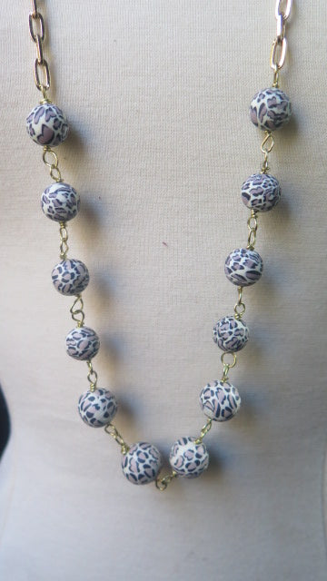 Long Animal Print Necklace/ Leoprad Print Bead Necklace/ Animal Print Beads Necklace