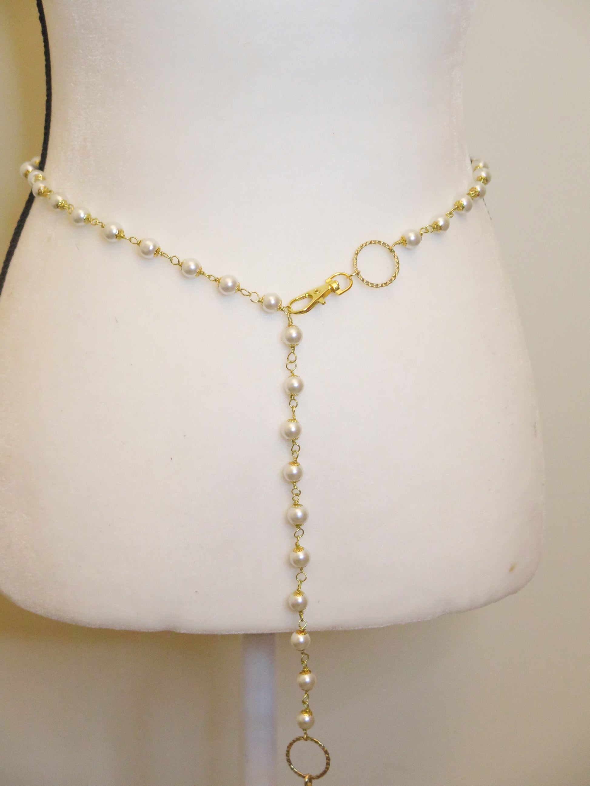 This elegant belt is designed to elevate your style and enhance the beauty of any outfit. Crafted with care, it features 8mm pearls, gold-plated caps, and gold-plated wires, all brought together with a secure lobster clasp. Measuring 50 inches in length, this belt is both chic and versatile. For personalized adjustments, feel free to contact us.