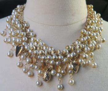 Pearl Cluster Gold Necklace/ Pearl Grape Inspired Necklace/ Pearl Gold Necklace