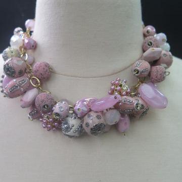 Pink Cluster Necklace/ Pink Necklace/ Grape Inspired Pink Necklace