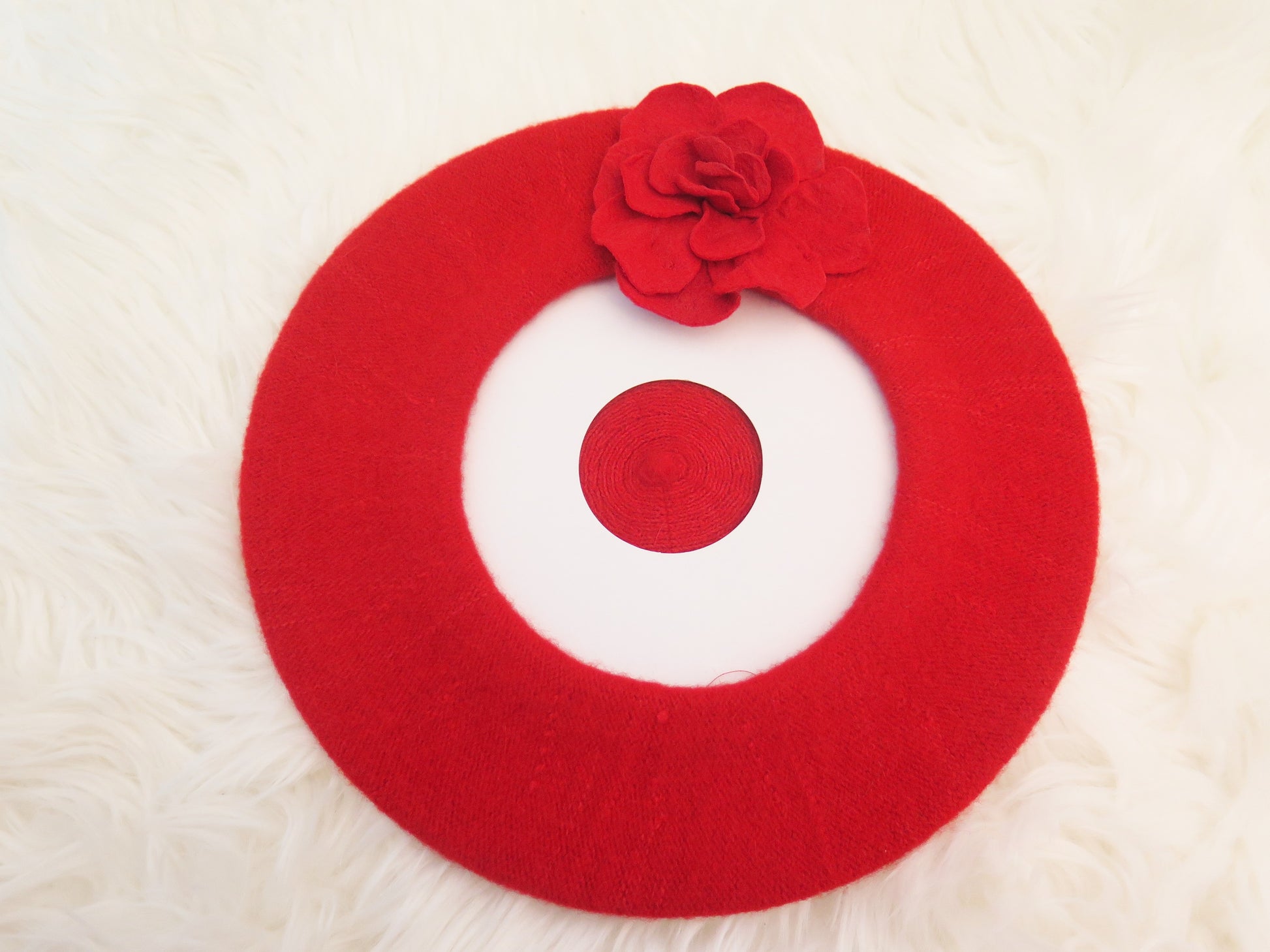 Red Flower Beret/Red Beret/ Red French Wool Beret/ Red French Felt Beret/ Red Beret For Women