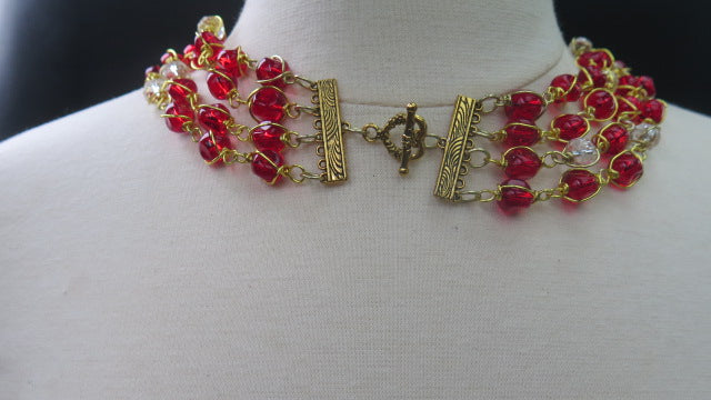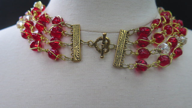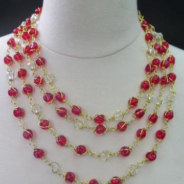 Red Layered Necklace/ Red Wire Wrap Necklace/Red Multilayer Necklace