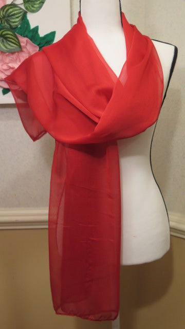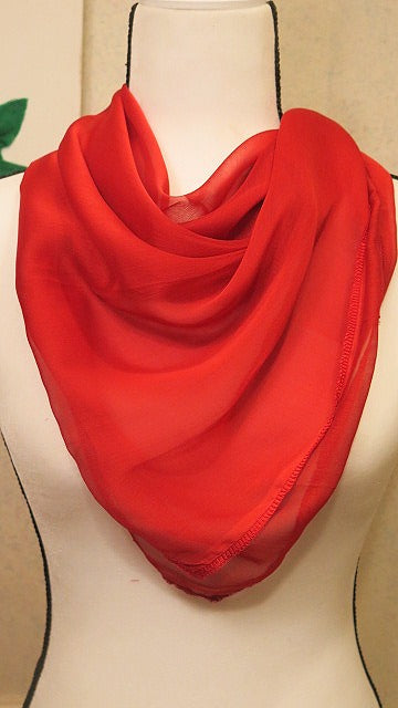 Red Square scarf, made with polyester chiffon. It can be worn in many different styles.It measures 33"X 33".