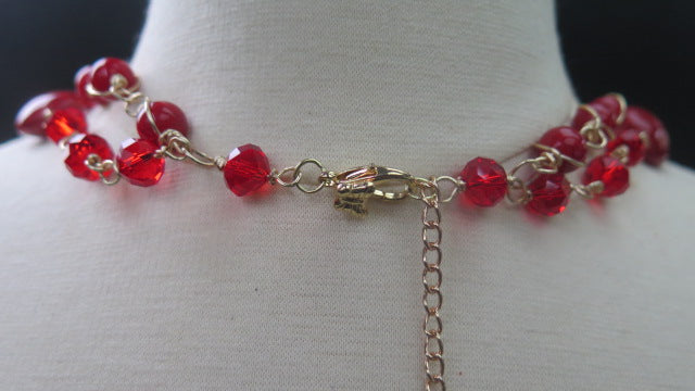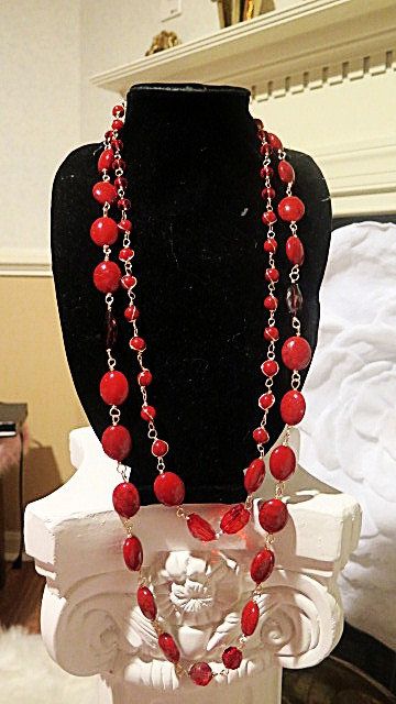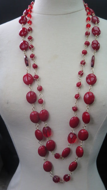 Red Bilayer Necklace/ Red Double Layer Necklace/ Red Necklace/ Red Summer Necklace/ Long Red Necklace