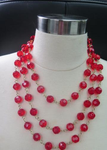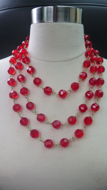Red Trilayer Necklace/ Red Necklace/ Multilayer Red Necklace