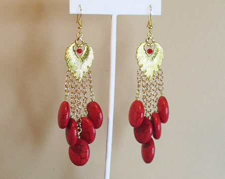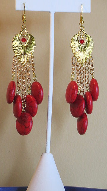 Red Zelda earring stunning earring. The earring is made with red coin beads, gold tone chain, gold tone earring connector and french hook.This earring measures 4.2".The earring is slightly heavy but the beautiful is worth the weight.