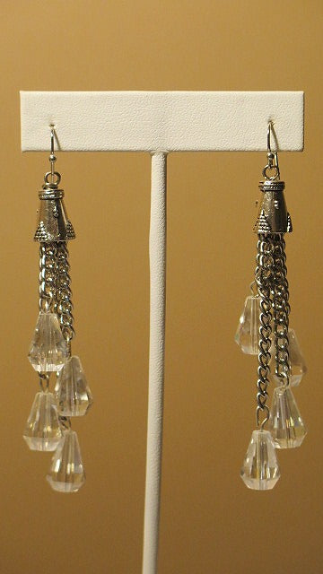 Sassy Silver Earring/handmade Earring For Women/Long Silver Fringes Clear Beads Earring